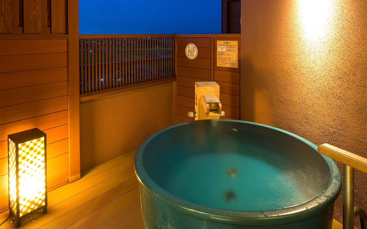 - 露天浴池使用温泉(客房内浴池设有淋浴区)。