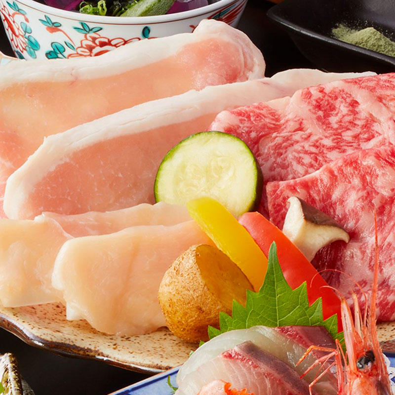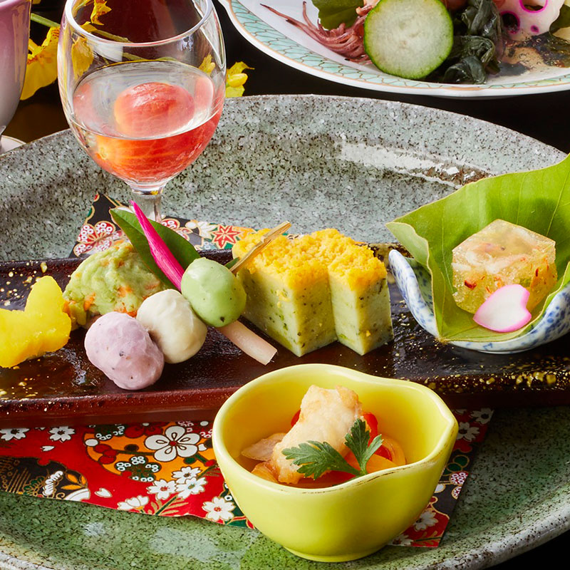料理 基本料理:白雲膳 特選料理:天祥膳 季節のお料理 ご朝食 お子様料理 お料理追加プラン 食物アレルギーについて 料理イメージ 基本料理4〜6月 加賀の味覚満載。 ゆのくに天祥の スタンダードプラン。 食前 季節の果汁 前菜 季節の旬菜 彩々盛合せ 椀物 春野菜万頭 金粉 色紙海老 加賀ブロッコリー 造里 五種盛り 桜鯛 福井サーモン 間八 中鮪 甘海老 あしらい一式 替鉢 肉三昧陶板焼き こだわり国産牛 加能豚 国産鶏 温野菜添え 山葵塩 葱垂れ お凌ぎ 山代温泉 すぱクロくん饂飩 錦糸卵 オクラ 金時草ゼリー 葱 酢の物 蛍烏賊 ほっき貝 胡瓜 金時草 花蓮根 ジュレ酢 食事 石川産こしひかり 留椀 メギス団子 湯葉 三つ葉 口取り 香の物 盛り合わせ 水物 季節のムース フルーツ 2026年4月1日(水)から6月30日(月)までの料理内容です。 ※ 季節や仕入れ等により料理内容、器などが変わる場合がございます。 料理長こだわりの一品 春野菜万頭 旬の春野菜と加賀ブロッコリーを一工夫。万頭のもちもちとした食感と美味しい風味をお楽しみください。 縄文蕎麦 古来から伝わる赤米を使ったもちもちとした食感が美味しい当館おすすめのおそばです。