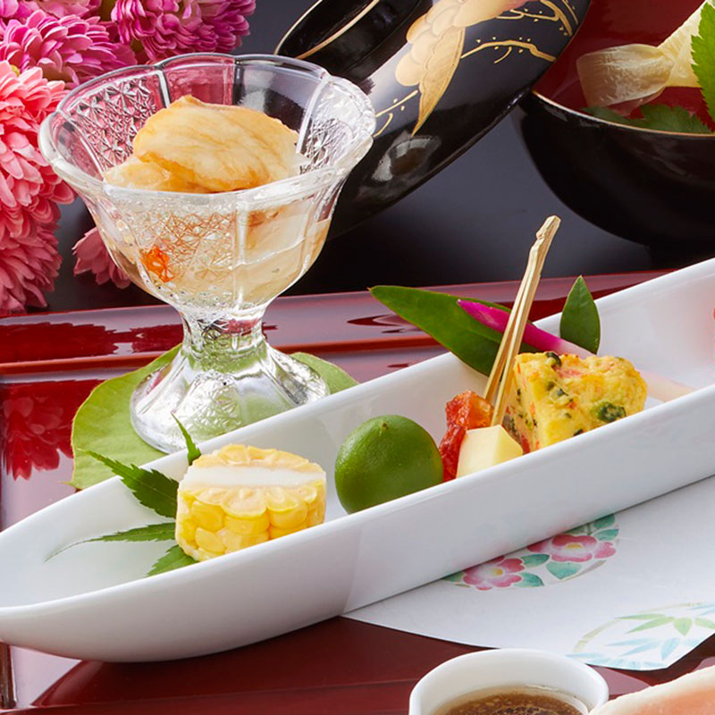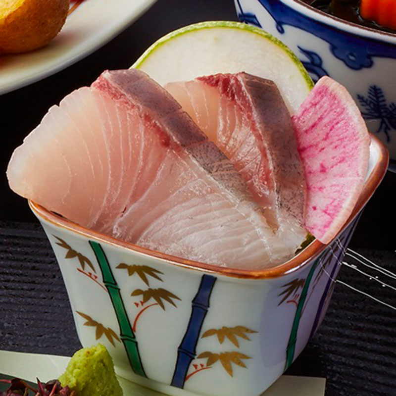 夏が旬の「鱧」と大日山を源とする二つの清流と肥沃な平野がある豊かな自然に培われた「九谷野菜」を冷たくさっぱりとお召し上がりいただけます。