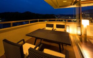 | Rooms | 2 Japanese-style rooms, 2 living rooms, 2 bedrooms (with Simmons mattresses), indoor bath, Salon de Terrace, 2 sinks, 2 toilets |