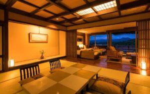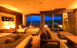 | 객실 구조 | 일본식 룸, 거실, 베드룸 (시몬스사 제품), 실내 욕실, 데크테라스, 씽크대 2개, 화장실 2개 |